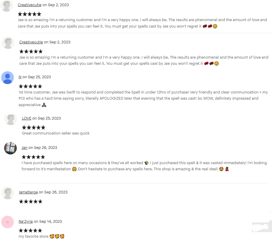 Spells all the way from Love Spells to Regret Spells, Good Fortune...